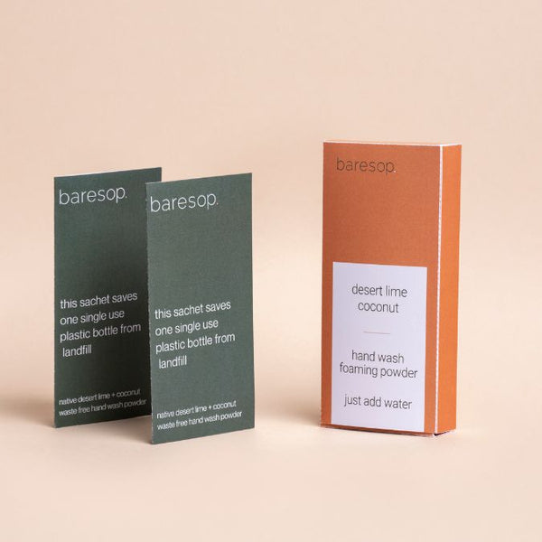 Enjoy the native scent of Desert Lime and Coconut with this Baresop refill hand wash pack. Containing two sachets of foaming body wash, this pack is the perfect top-up for your refillable bottles.