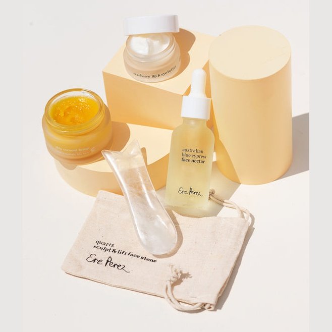 Cleanse face and hands. Apply australian blue cypress face nectar to face & neck to help stone glide over skin.